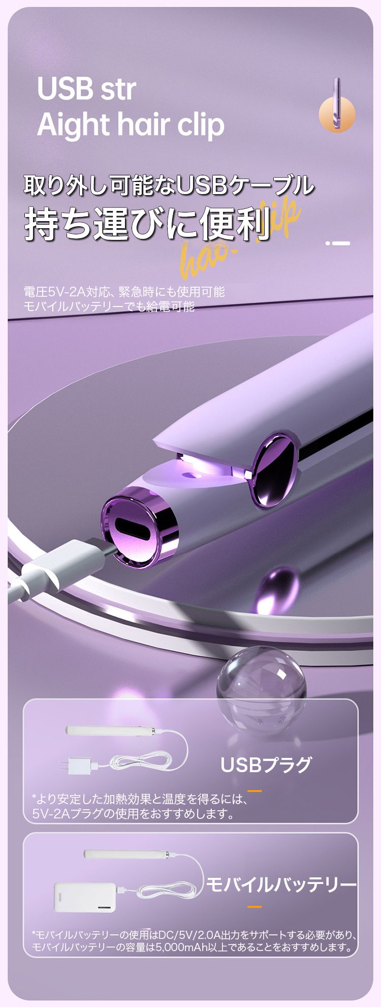 USB給電式ヘアアイロン